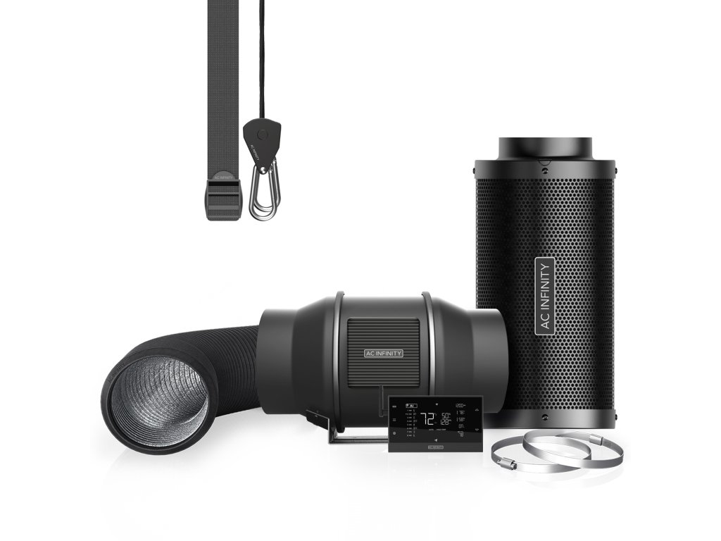 - A complete air filter set with everything you need to effectively cool and ventilate your grow tent and reliably control odors.