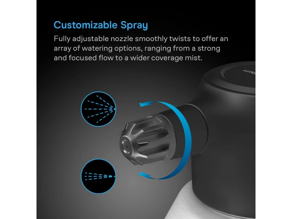 An automatic spray bottle designed to help you water your plants with ease, featuring a single on/off button that is quick and easy to operate. This electric sprayer can continuously spray water for up to 3 hours, backed by its large 2200 mAh power capacity that can quickly be recharged. Its automatic spray is quiet and non-disruptive, powered by an efficient motor that generates low noise. You can adjust this spray using the nozzle tip to get a wide range of spraying patterns from a strong, focused waterjet to a fine mist. Its 2-liter capacity tank features a sturdy thermoplastic build that is resilient and resists cracking that results from exposure to outdoor elements and ultraviolet rays.