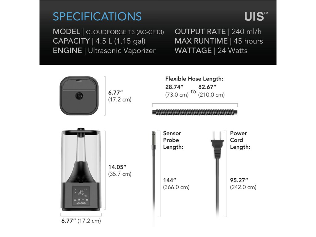 This humidifier is designed for maximum humidity control in the growing environment. The flexible hose allows humidity to be directed to specific areas within the growing space, up to a length of 1.2 meters. The device is equipped with waterproof ports ensuring a safe connection to controllers without water leakage. Additional features include a hidden backlit display and automatic shut-off when the water runs out to extend the device’s lifespan and prevent damage.
