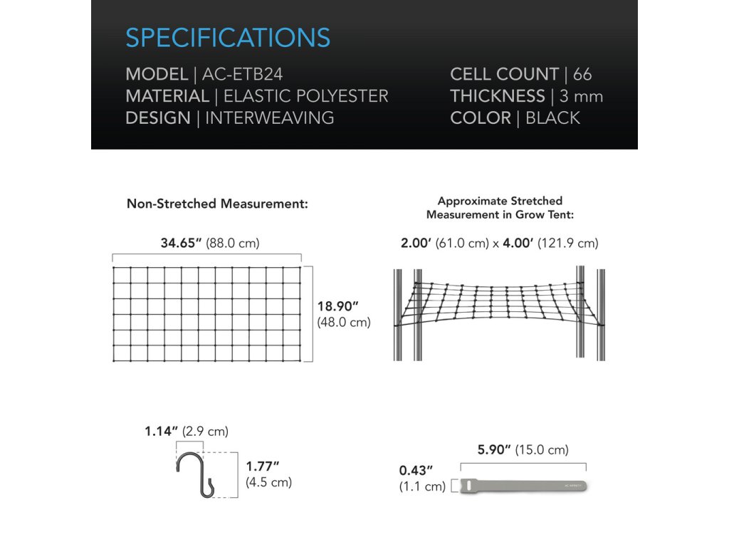 Use: For supporting plants in grow tents and other indoor/outdoor applications.