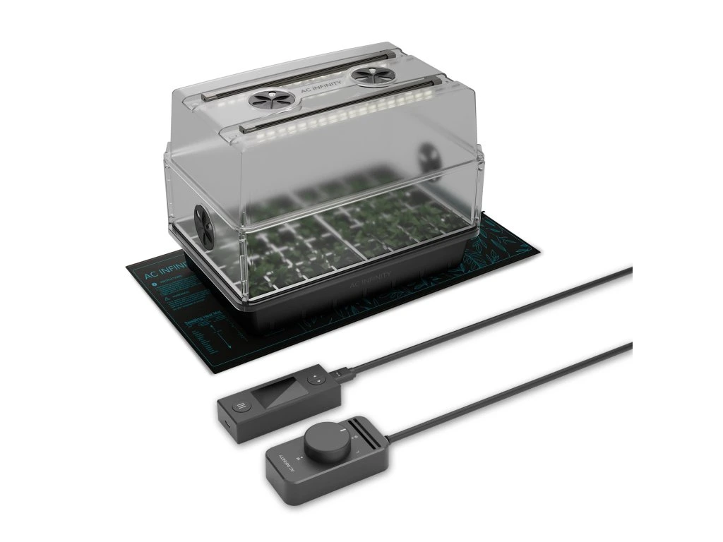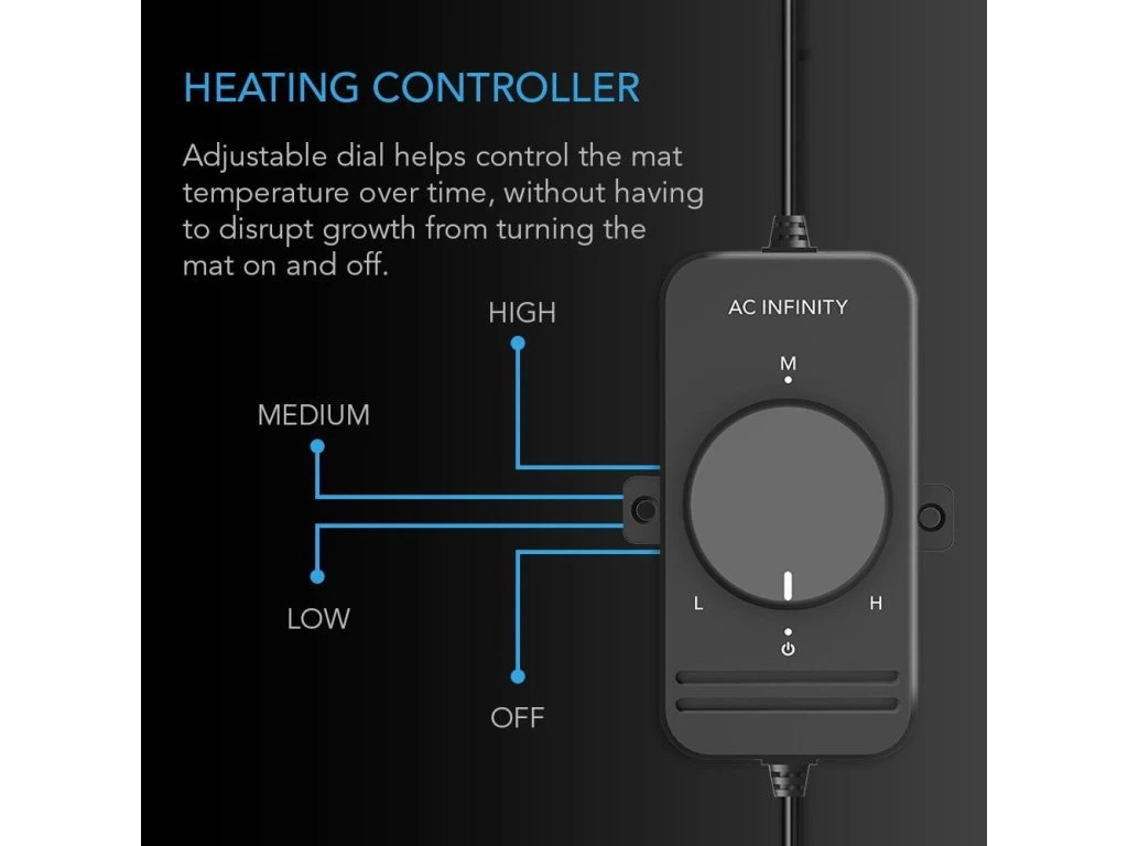 - A heating mat with an adjustable dial accelerates seedling growth by providing even, constant heat.