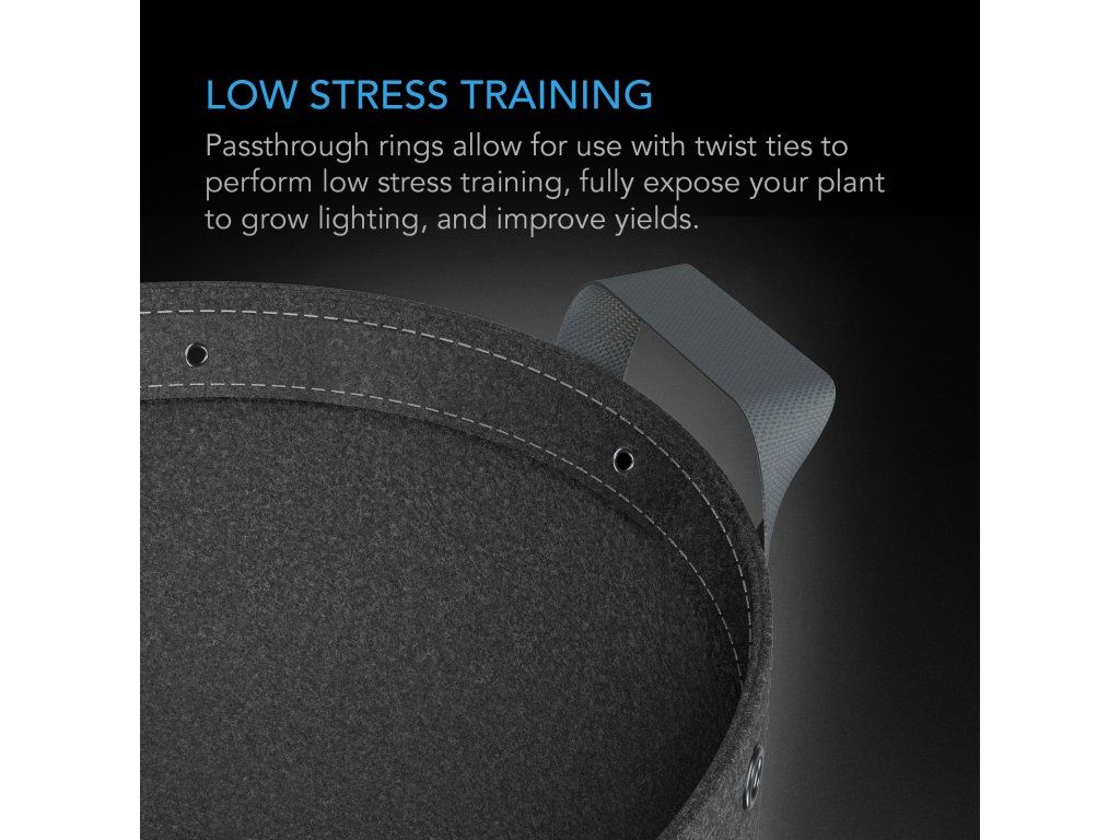 - Integrated metal eyelets enable the attachment of binding wires for low-stress training (LST).