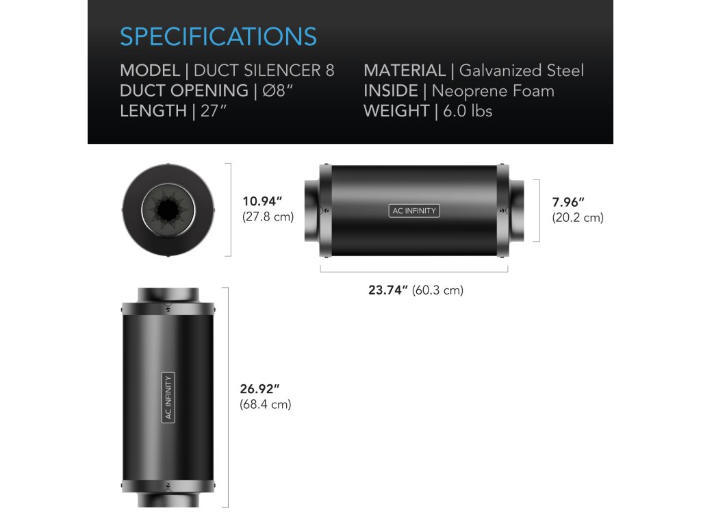 - An air duct silencer designed for use with inline fans in grow tents, bathroom fans and other HVAC applications.