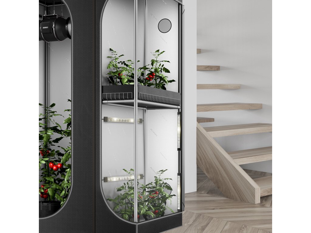 - Magnetic attachment to poles and fabric walls of grow tents using the additional poles supplied