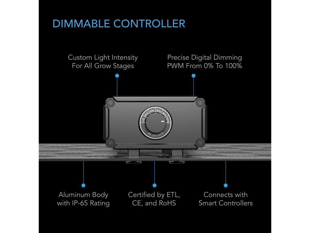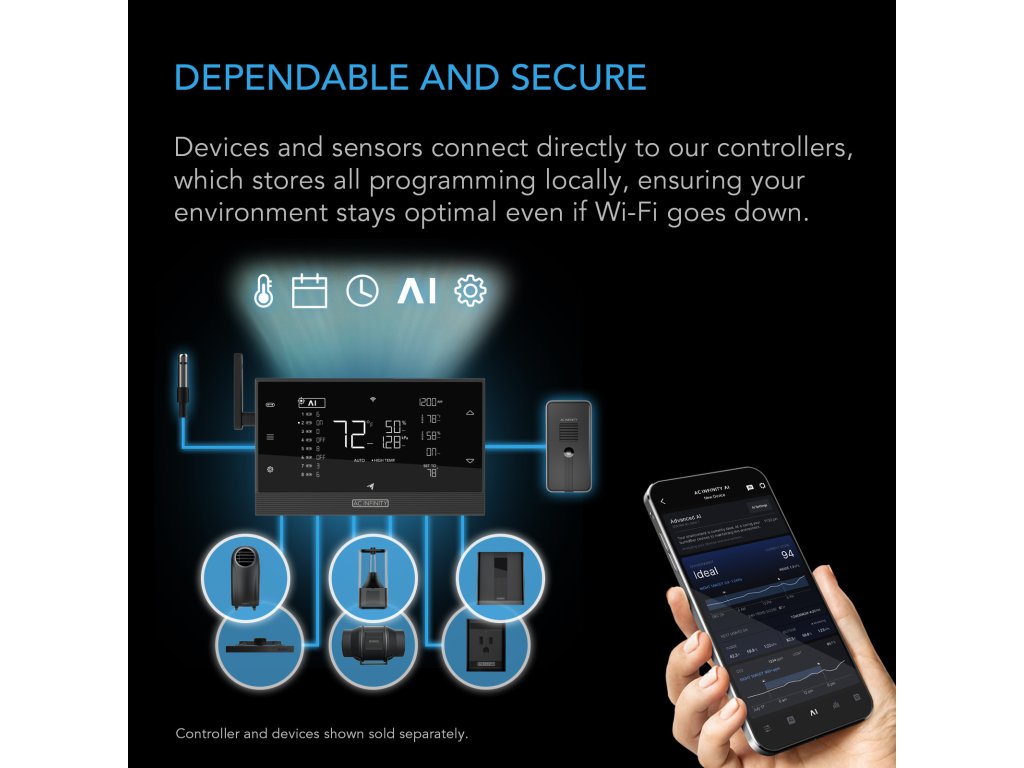The product is part of the UIS™ platform of attachments and smart controllers and can be connected to the AC Infinity app via Wi-Fi for automated and centralized control of your ideal cultivation environment.