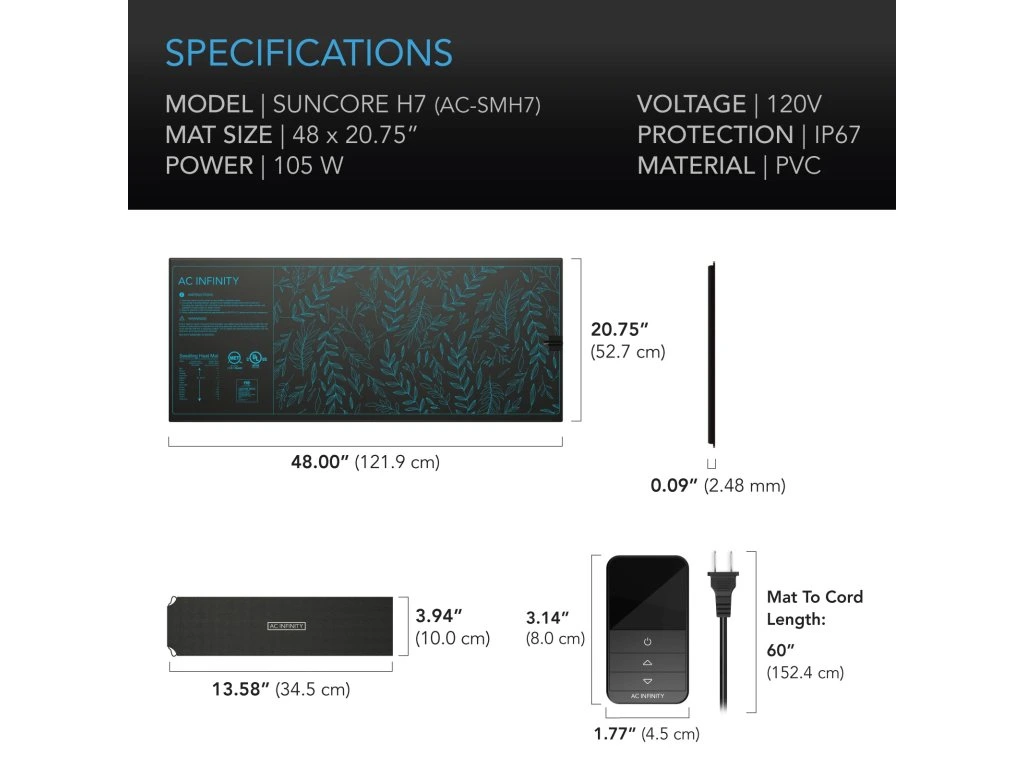 AC Infinity SUNCORE H7, Heating Mat for Seedlings with Digital Display Controller, 52.7cm x 121.9cm