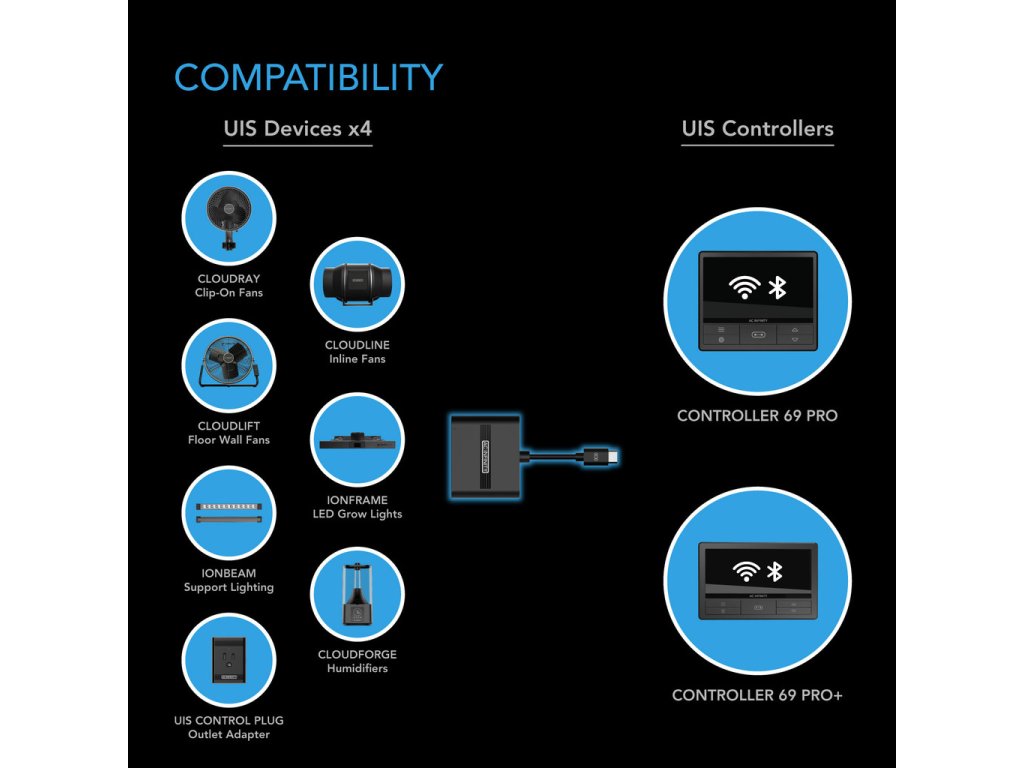 This splitter hub is compatible with a wide range of growing devices and controllers from the UIS platform, including the following products: