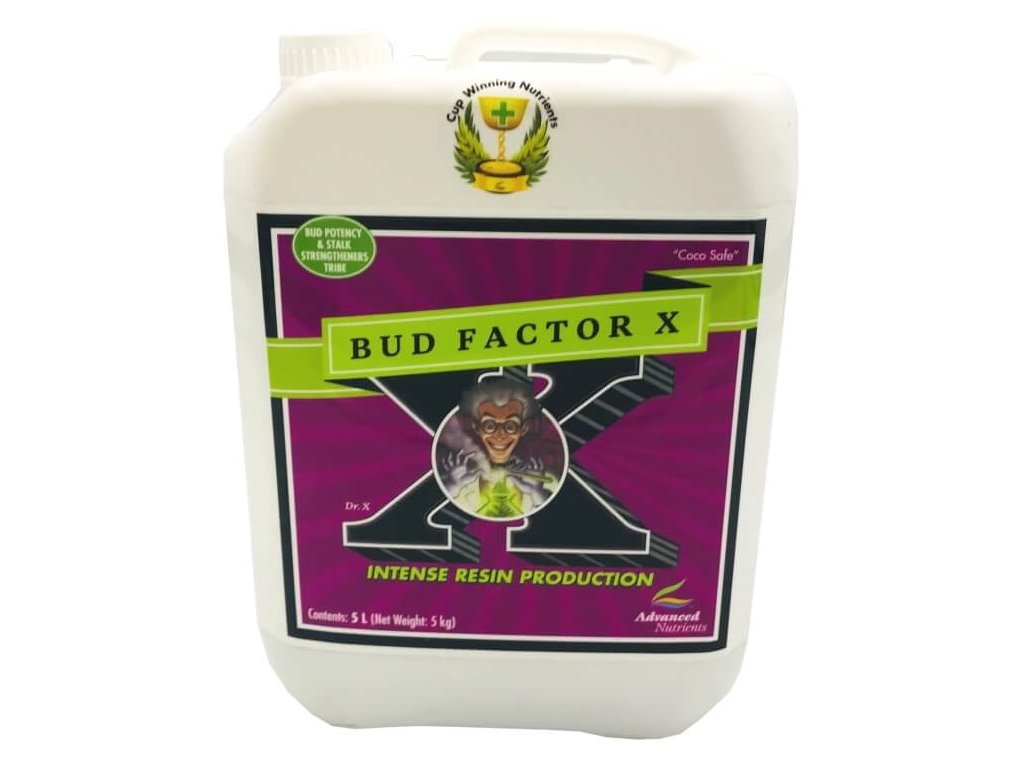 Bud Factor X is applied with nutrients starting in the early bloom phase to trigger and maintain a higher level of resin secretion throughout the entire bloom phase. The ingredients in Bud Factor X are absorbed by the plants roots and begin to signal the plant to maximize production of these valuable compounds. When this occurs, not only is the plant of higher quality, it is able to continue to grow abundant harvests.