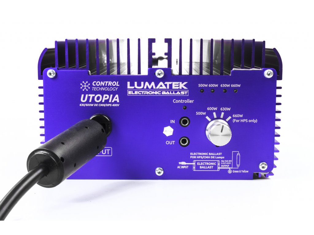 The all-new Lumatek Utopia 630/600 DE CMH/HPS controllable ballast uses the latest in microprocessor-controlled electronics, to power both high-voltage CMH and HPS grow lamps – which are the most efficient HID light source for horticulture farming – allowing for both possibilities without additional expense.