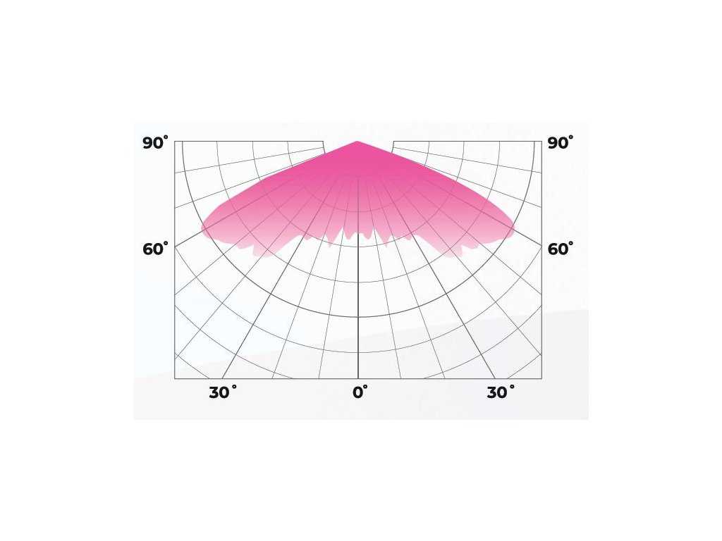 DLI Toplighting luminaires are designed to provide a high level of photosynthetic flux (PPF) values with optimal angular vertical uniformity of light. The unique design of the lens creates a high even distribution of light in the growing space.