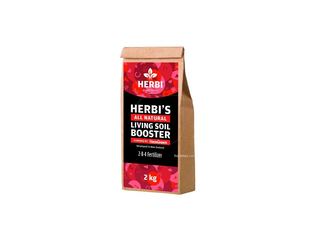 Herbi's All Natural Living Soil Booster 2+8+4 is a natural fertilizer for use during the flowering stage. It works best when combined with Herbi's Living Soil.