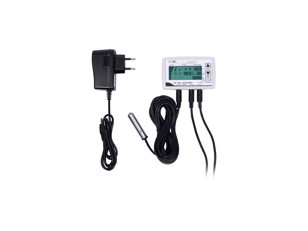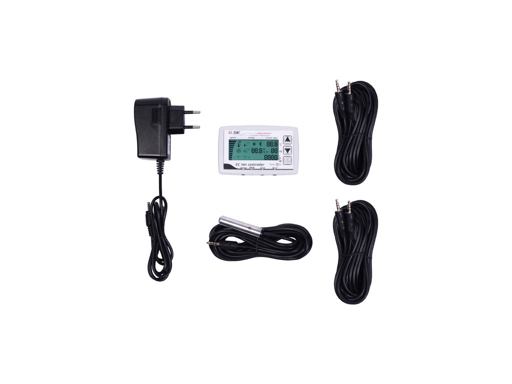 This EC fan controller with LCD display, keyboard and power LED allows a very easy setting and reading of all the information's given by the fan such as actual set speed, temperature, humidity day/night, negative pressure of the intake fan and rounds per minute of the exhaust fan. A built in light sensor in the probe recognize day/night modes. The EC fan controller comes with power adapter 1m cable, a 4m sensor cable and 2x 4m fan cable including all connectors 4pole 3.5mm jack. It ready to use. You can program 15 individual settings with only three buttons: