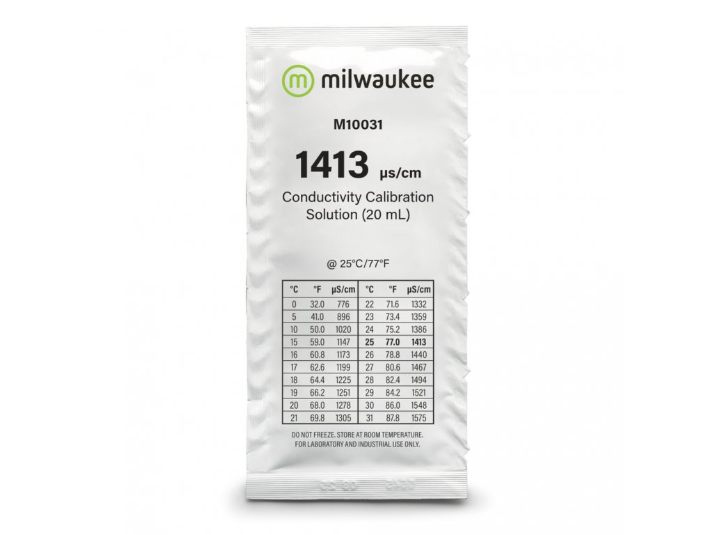 Milwaukee conductivity solutions are labeled with the lot number and expiration date and packaged in an air tight, tamper-proof sachet.