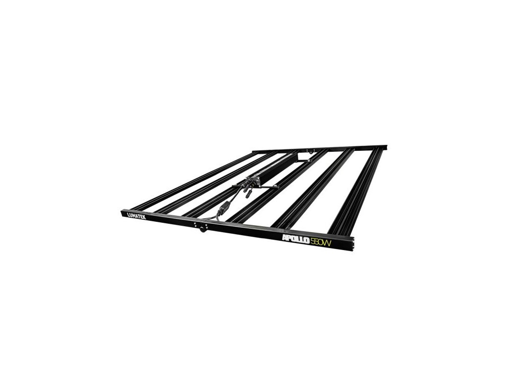 The LUMATEK APOLLO 550W LED fixture is designed for entry-level growers seeking consistent performance and optimized yields. It delivers a photosynthetic photon flux (PPF) of 1540 μmol/s with a real efficacy of 2.8 μmol/J, covering grow areas of 1.2 x 1.2 meters for flowering crops.