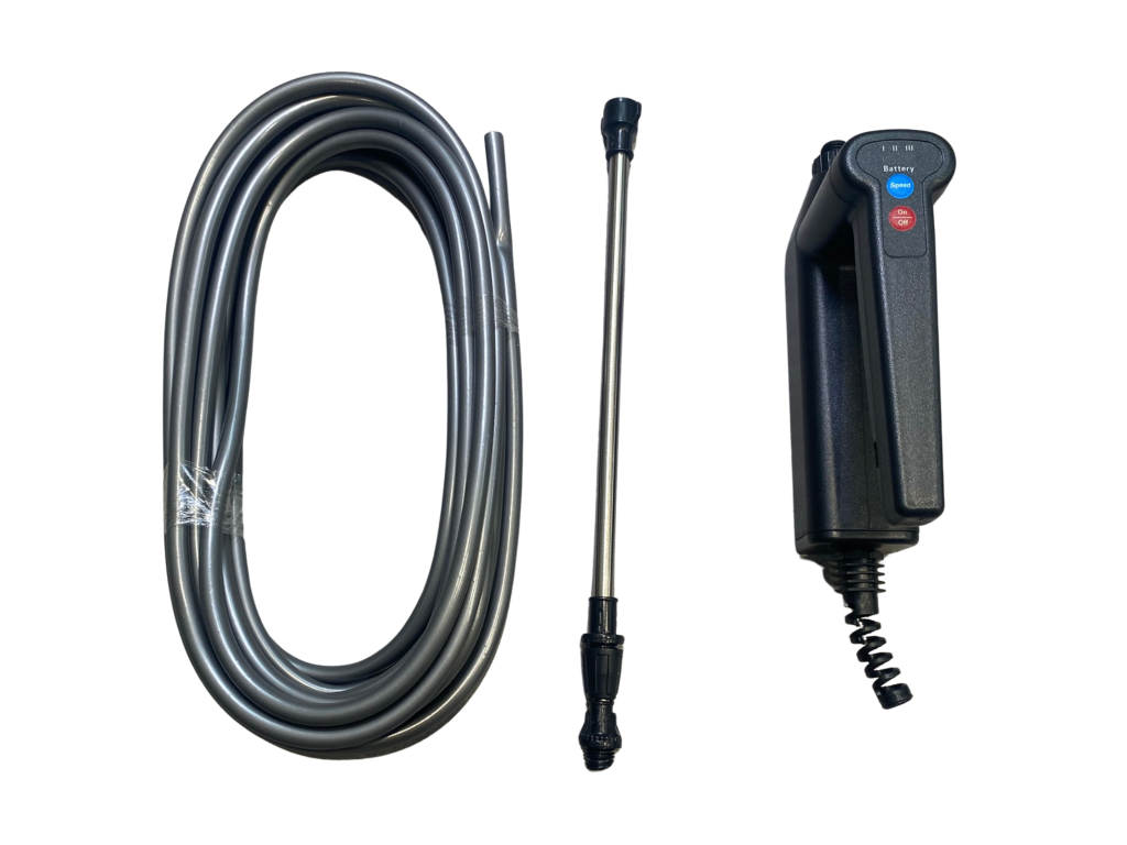 Its smart battery indicator ensures up to 3 hours of autonomy after a full charge. Includes an 8 m hose with filter, ideal for using water from natural sources, and a telescopic wand extendable from 59 - 104 cm.