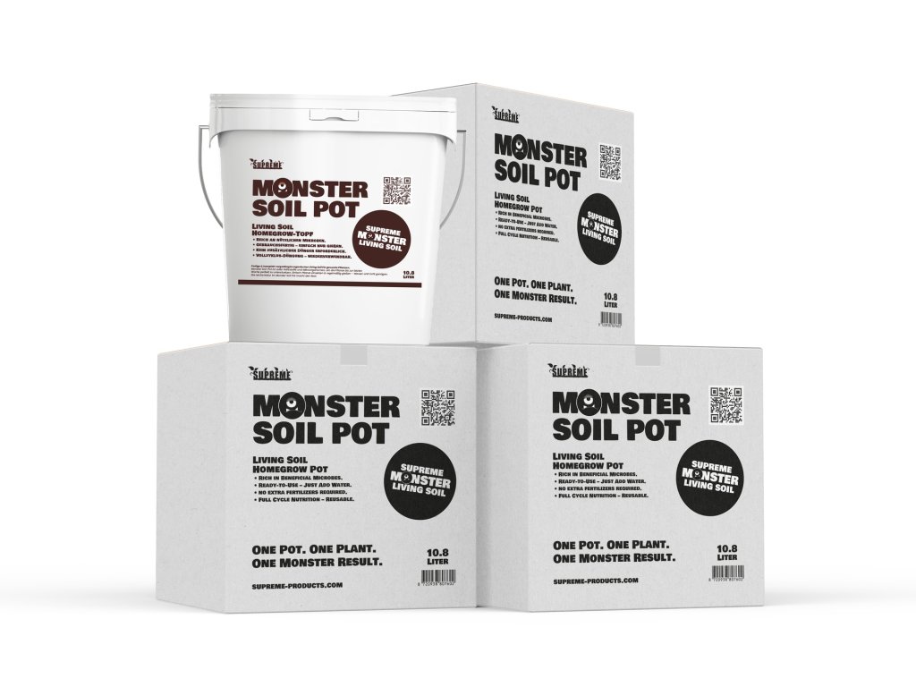 Enriched with mycorrhiza, Trichoderma spp., and other beneficial microorganisms – the Monster Soil Pot is both a vibrant Living Soil with active soil life and a complete Supersoil with organic slow-release fertilizer, allowing plants to grow healthily without additional nutrients.