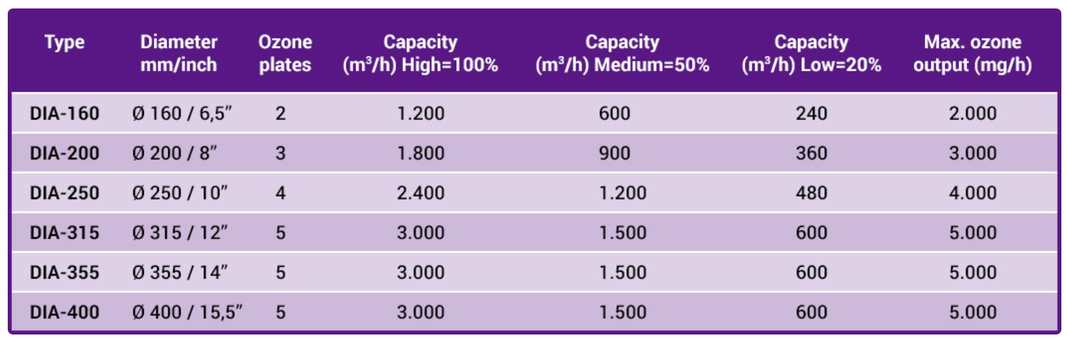 Ozonér DiamondAir PRO - 3000m3/h - Ø315mm - 5g/h