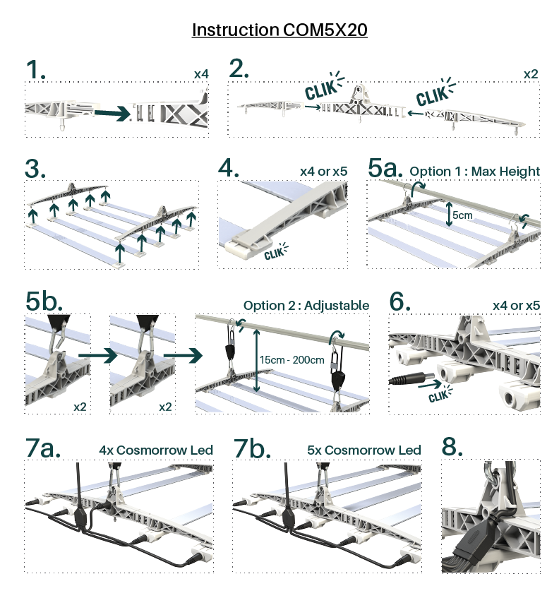 | Dimensions (Assembled) | 500mm x 400mm x 65mm Distance between each Cosmorrow Led : 4.5cm |