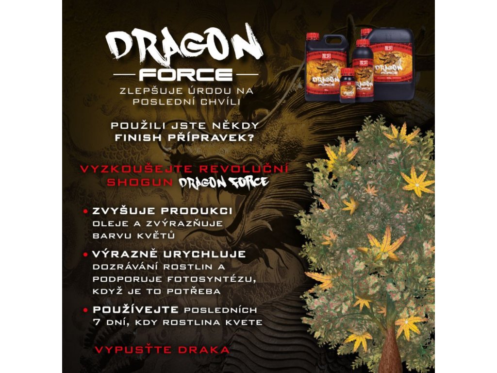 SHOGUN Dragon Force is a comprehensive plant nutrient used during the late flowering stage. It is specifically designed to speed up and enhance the maturation process, while increasing the content of secondary metabolites. It has been shown to remobilise certain nutrients to the fruit and flowers, stimulating plant defence systems and improving the final quality of your produce.