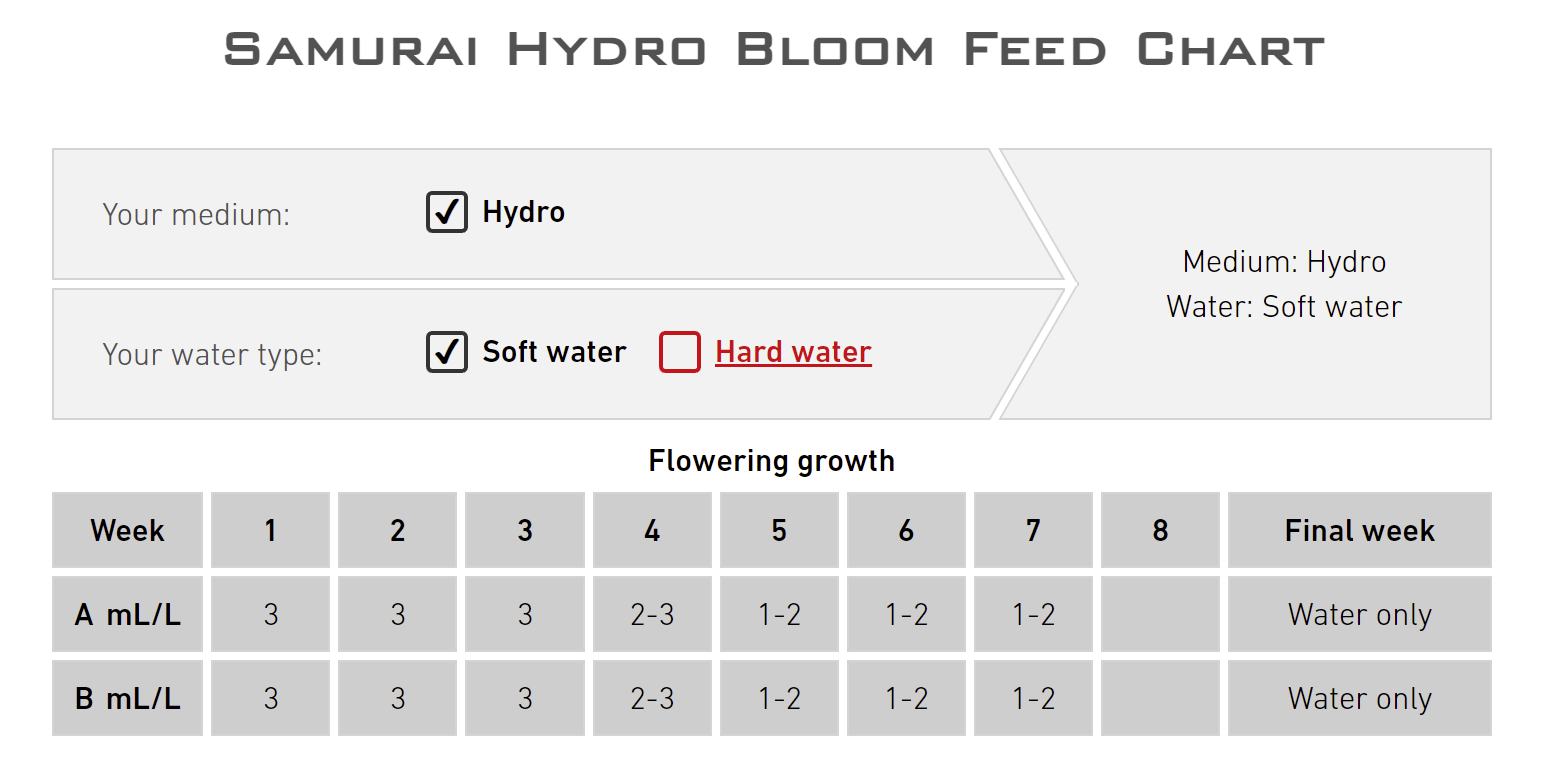 SHOGUN Samurai Hydro is a complete 2 part hydroponic nutrient contains refined, precision formulated ingredients to produce amazing vegetative & flowering plant development. Soft water version.