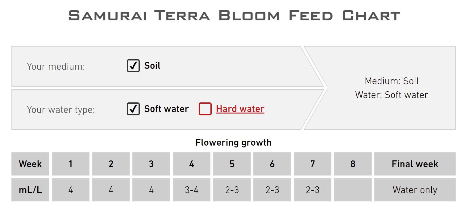 SHOGUN Samurai Terra is a highly refined mineral feed for soil grown plants. For the flowering stage.