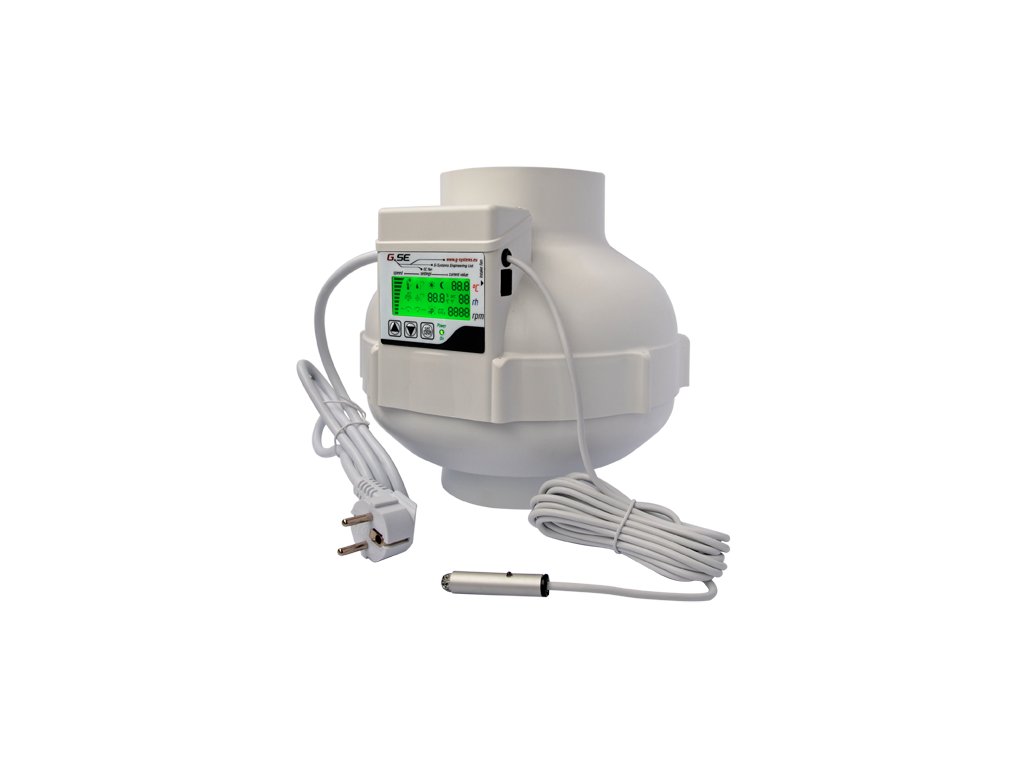 The EC-fan (electronically commutated motors) has a diameter of 125mm, it is a very powerful fan with 800m3/h at 0[Pa]. The EC fan has the characteristic that he makes no hum on the low rotation and fulfills the required efficiency law by 2018. A built in LCD display with keyboard and power led allows a very easy setting and reading of all the information given by the fan such as actual set speed, temperature, humidity day/night and rounds per minute of the motor. A built in light sensor in the probe recognizes day/night modes. The Ventilator comes with 1.5m power cable and 4m sensors cable, it is ready to use. You can program 14 individual settings with only three buttons: