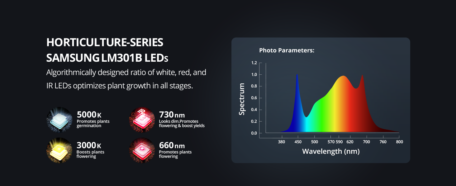 New Version of the Full Spectrum Light P1000. Enhanced Model for 2023 with SMD Chips LM301B, which maximize final results even with very low power consumption!