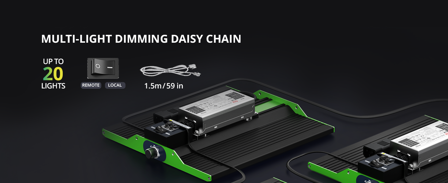 - SMD chips LM301B with a better spectrum- better "map" of chip distribution for more efficient coverage - spot regulation 0% - 5% - 25% - 50% - 75% - 100%- complete hanging set including carabiner- new size 30x28x7.3cm - connectivity up to 20 ViparSpectra P1000 lights Completely discreet, but extremely powerful artificial light source for any growbox!