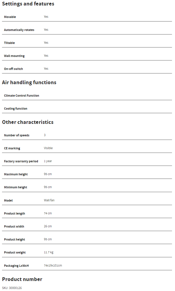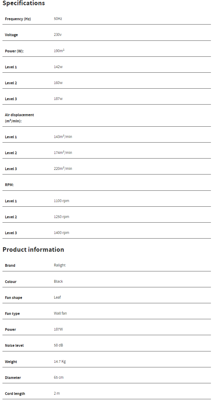 The ø65cm (187W) black industrial wall fan is a powerful and impressive device that not only offers functionality but also has a robust appearance. With its impressive size and solid construction, this fan is designed to efficiently move air in large spaces.